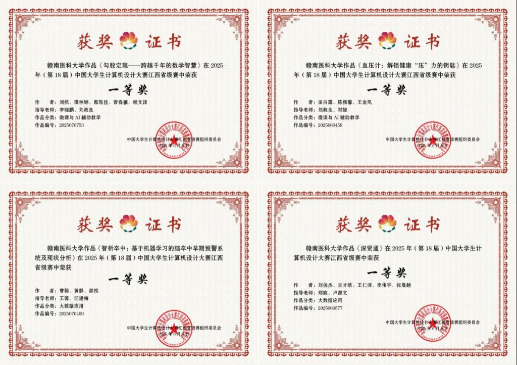 近日,2025年(第18届)中国大学生计算机设计大赛江西省级赛评审结果揭晓。经过激烈角逐,我校医学信息工程学院学子最终荣获一等奖4项、二等奖18项、三等奖12项,获奖数量居全省高校前列。荣获一等奖的4项作品将参加全国总决赛。