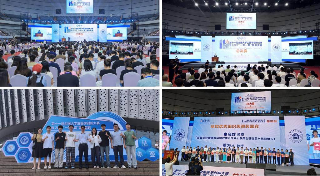 近日,第十一届全国大学生医学创新大赛暨2025“一带一路”国际竞赛总决赛在国内外顶尖学府与创新团队的激烈角逐中圆满落幕。在这场激烈的角逐中,我校第一临床医学院6支参赛队伍凭借严谨的学风、扎实的学术功底和自信从容的赛场风貌脱颖而出,一举斩获金奖2项、银奖2项、铜奖2项、最佳风采奖1项,学校也首次荣获优秀组织奖,为我校在该项赛事上单届获奖数量、奖项层级覆盖与综合表现最好成绩,取得历史性突破。