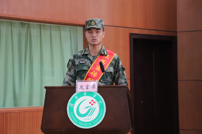 “征兵宣传形象大使”、2019届毕业生代表肖任萍、优秀退役大学生代表徐成伟分别发言,号召广大有志青年积极响应祖国召唤,携笔从戎,投身军营。