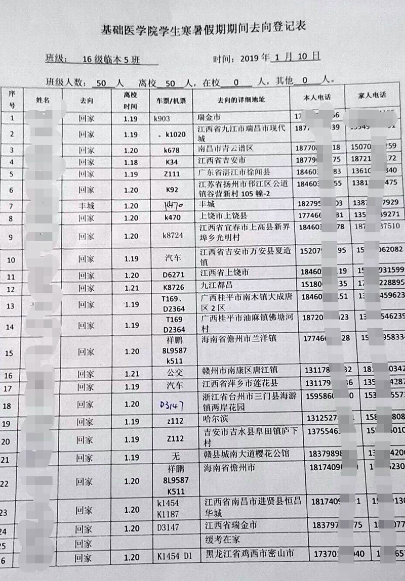 同时该处分别制作了“赣南医学院2019年寒假致家长一封信”和“赣南医学院校园贷风险告知书”等信函,要求全体学生开展“过好一个健康安全假期,开展一次社会调研(岗位体验),做好一些家务事,拍摄一组有特色的照片,收集一份有特色民间中药方”的“五个一”仁爱教育践行活动,以及寒假期间做到 “不准睡懒觉熬夜、不准赌博酗酒、不准暴饮暴食、不准沉迷网络游戏、不准打架斗殴参与黑社会活动、不准迷信传教、不准私自出游、不准传谣信谣、不准乘坐不合格车辆(无年检、无保险、无牌照、无驾证、报废车辆等)、不准参与违法违纪”等“十不准”活动。并请求学生家长积极配合学校工作,督促孩子认真完成学校布置的作业,学生返校后及时上交假期作业和回执单。