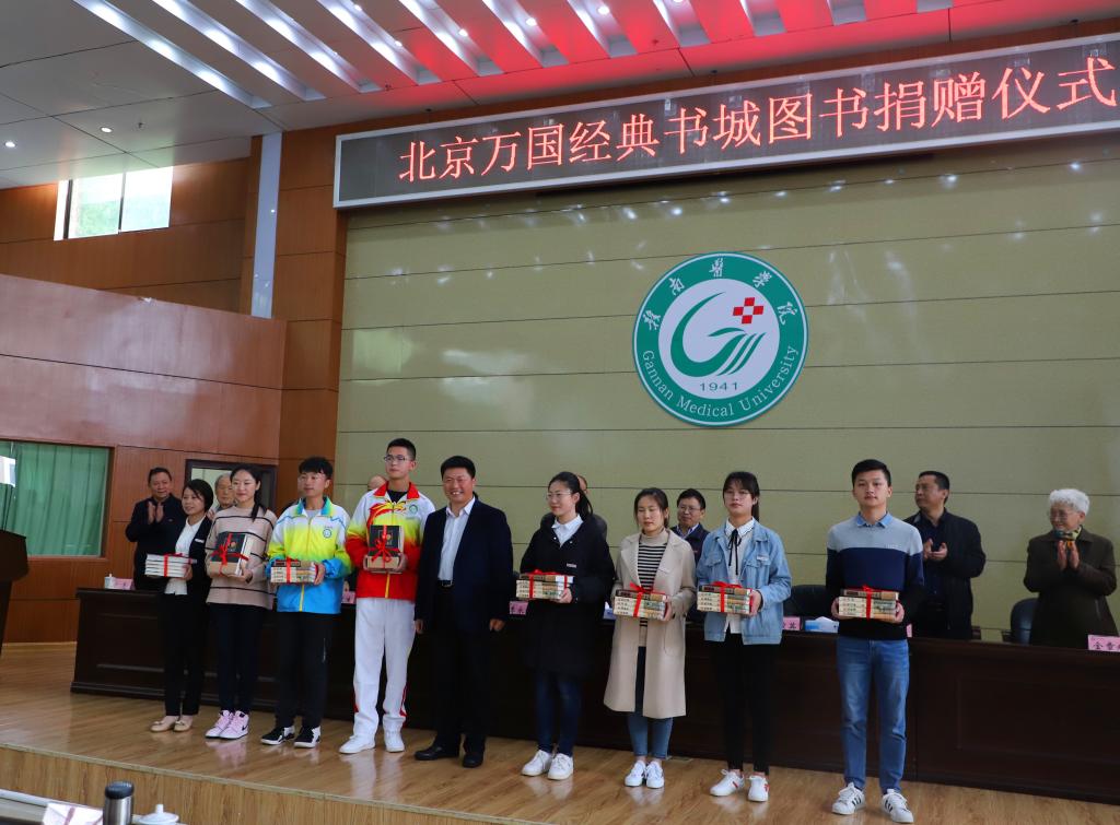 随后,举行北京万国经典书城图书捐赠仪式。在学校党委副书记曾泽鑫的主持下,北京万国经典书城总裁匡俊英向师生及学校图书馆捐赠了共500套图书。党委委员、副校长陈亮向捐赠方颁发捐赠证书。