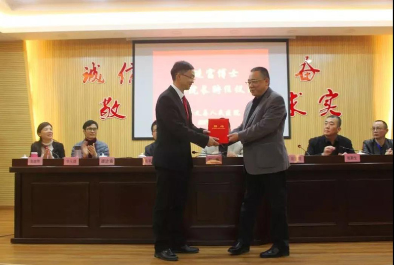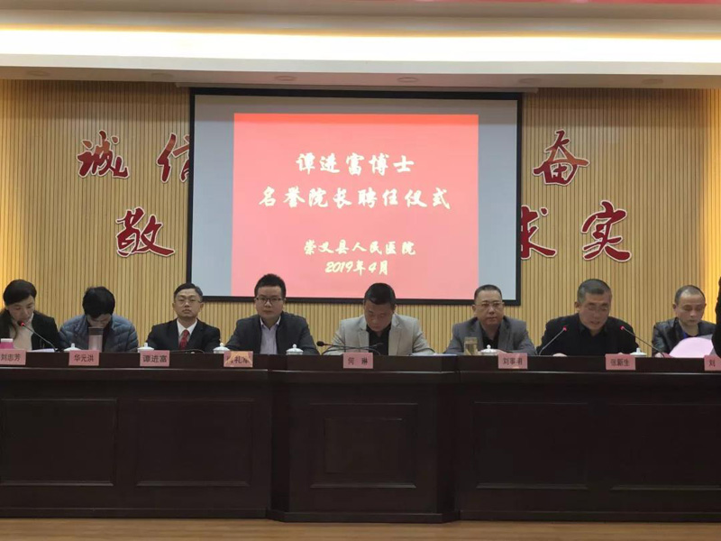 4月12日下午,崇义县人民医院举行聘任仪式,聘请我校96级校友、现中山大学附属第一医院谭进富博士为崇义县人民医院名誉院长。崇义县委常委、宣传部部长何琳,县政协副主席、人民医院院长刘事明,县委组织部副部长肖礼军参加聘任仪式。崇义县人民医院领导班子全体成员及组长以上干部、业务骨干代表100余人参加活动。