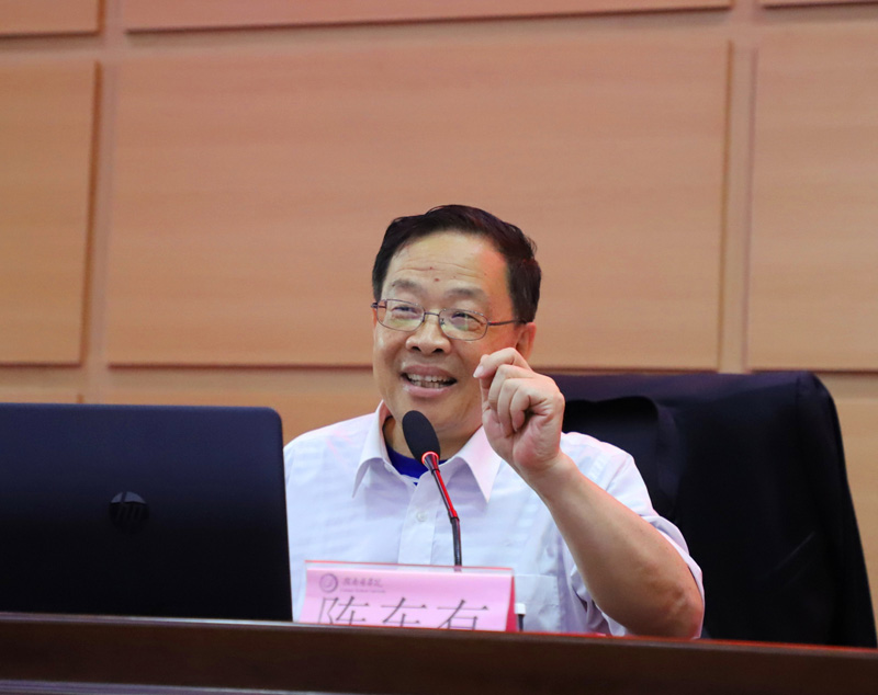4月29日下午,江西省高校思想政治理论课特聘教授、南昌大学教授、博士生导师陈东有到校作“厚德方能载物--培育和践行社会主义核心价值观”专题辅导。学校党委书记李恭进,党委副书记曾泽鑫,党委委员、副校长叶军明出席,党委宣传部、学工部、团委、研究生处等负责同志,各下属学院党委书记、分管学生工作副书记或副院长,马克思主义学院教师、全体辅导员、学生代表200余人到场聆听。曾泽鑫主持报告会。