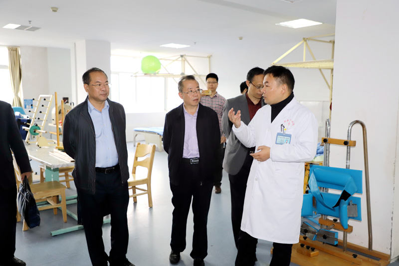 黎奇升一行首先参观了一附院章贡院区康复医学科、三附院康复治疗中心及神经康复科了解康复治疗专业科室及医教协同平台下实践教学,评细情况。