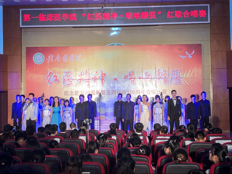 飞扬的歌声,演唱难忘的岁月;熟悉的旋律,演绎时代的乐章。为纪念建国70周年暨五四运动100周年,5月20日晚,我校第一临床医学院于在黄金校区隆重举行“红医精神·唱响赣医”合唱比赛。学校团委负责同志、该院学工办辅导员及班主任老师和学生同台高歌。
