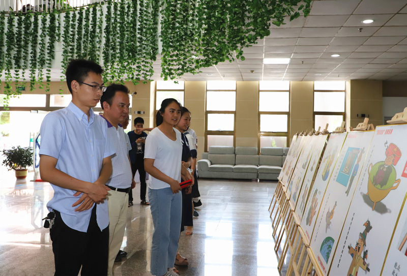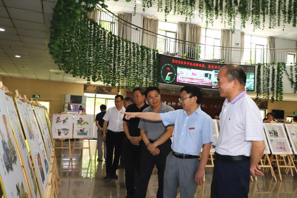 6月5日下午,学校在家校领导李恭进、曾泽鑫、陈亮、黄瑞忠、肖树辉、彭维杰与师生一道,在黄金校区图书馆观看“图说纪法”漫画巡展。