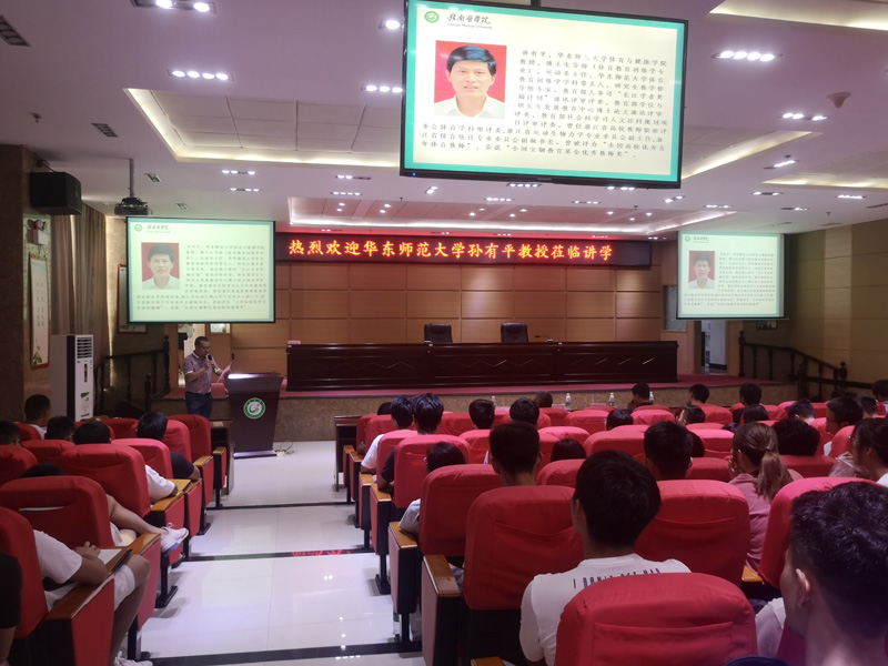 6月5日下午,华东师范大学体育与运动学院孙有平教授应邀来我校讲学,作了题为“现代体能训练及其发展趋势”的学术讲座。康复学院副院长温优良主持讲座,该院领导、相关学科专业教师及学生200余人到场聆听。