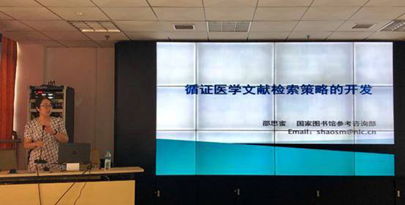 随后,邵思蜜副研究馆员来到一附院黄金院区作了题为《循证医学文献检索策略的开发》的讲座。一附院相关部门教职工、科研骨干、博士代表、研究生、住培学员100余人聆听讲座。邵思蜜从专业检索策略的开发、医学数据库的介绍及PubMed检索实例演示等作了阐述,讲解了各类数据库的检索策略和技巧。参会人员就科研文献检索工作中遇到的问题作了交流讨论。