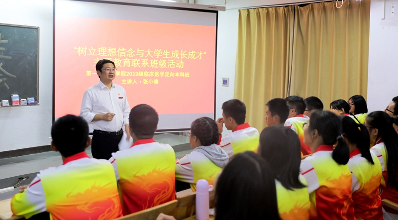 10月31日晚,学校党委委员、副校长、第一临床医学院(第一附属医院)党委书记张小康在黄金校区与联系班级第一临床医学院2019级临床医学专业(定向)本科班的同学见面。