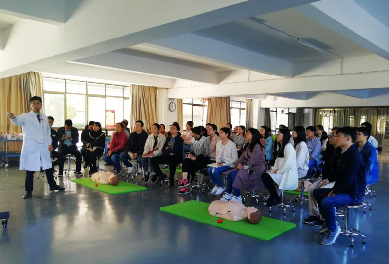 10月29日下午,我校在黄金校区医学实用技能培训中心,对新入职教职员工进行了急救技能培训,培训内容为心肺复苏及电除颤,50余名新入职人员参加了培训。