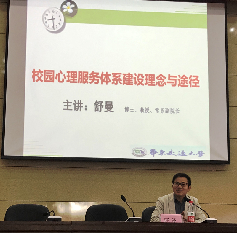 11月6日上午,华东交通大学舒曼教授应邀来我校讲学,并作了题为“校园心理服务体系建设理念与途径”的讲座,讲座由人文社会科学学院心理学系主任唐宏主持,各二级学院心理辅导员、心理委员、心晴联络员等300余名师生到场聆听。