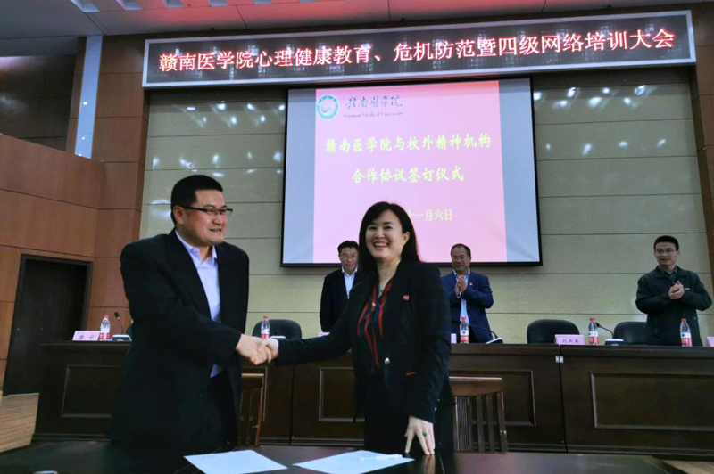 心理学系主任唐宏代表校心理咨询中心分别与赣州市第三人民医院、第一附属医院签订了精神卫生服务协议。根据协议内容,双方将在我校大学生的心理保健与精神卫生服务工作上进行联动协作。