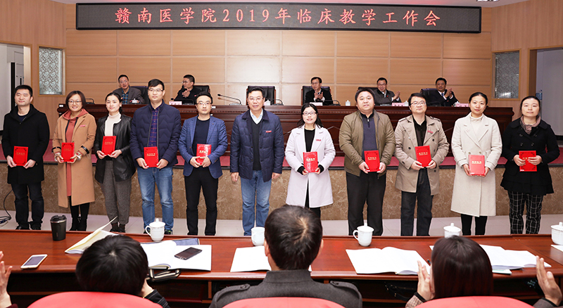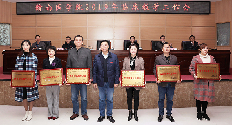 教务处处长严宜明宣布了2018-2019年度赣南医学院优秀实践教学基地、优秀带教教师获奖名单。附属萍乡医院(萍乡市人民医院)、中山市人民医院、赣州市人民医院、附属景德镇医院(景德镇市第二人民医院)、兴国县人民医院和会昌县人民医院等6个单位荣获优秀临床教学基地称号,学校44所临床教学基地的200名临床教师荣获优秀带教教师称号。