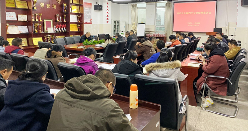 12月19日下午,学校党委委员、纪委书记肖树辉到康复学院宣讲党的十九届四中全会精神,康复学院全体教职工及学生党员代表60余人到场聆听报告。