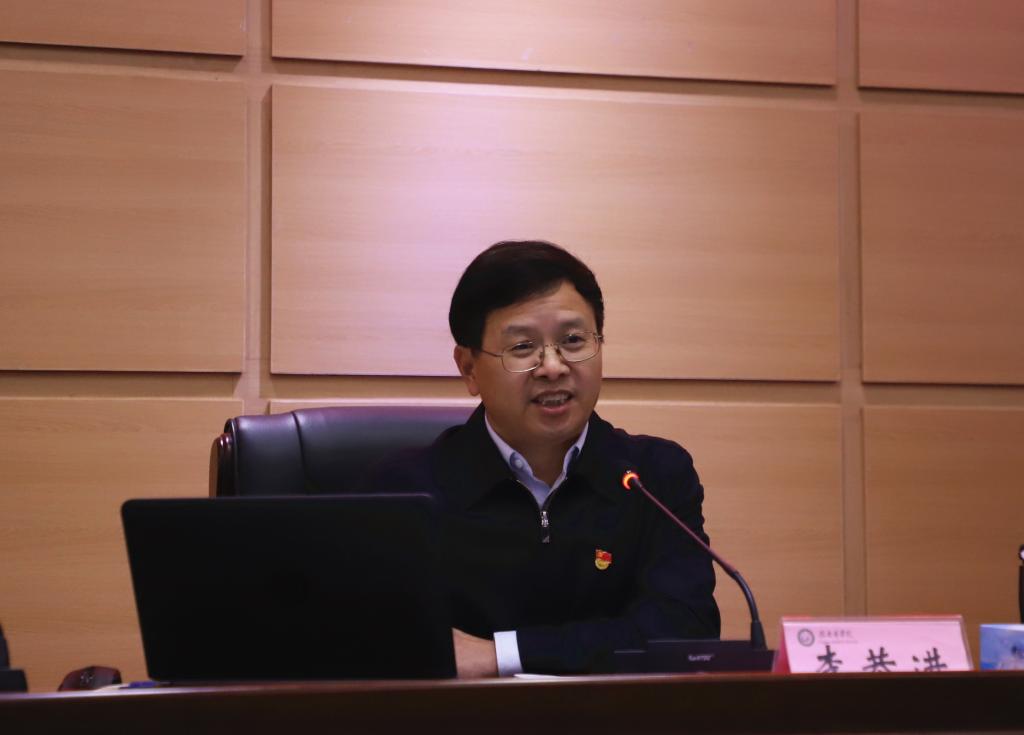 12月24日下午,学校党委书记李恭进在黄金校区图书馆学术报告厅宣讲党的十九届四中全会精神。学校全体领导、处级干部,以及内设党总支、党支部书记、学生党员代表共200余人到会听讲。宣讲会由党委副书记曾泽鑫主持。