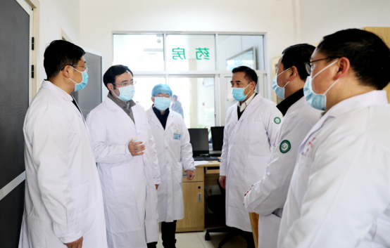 刘潜实地视察了门诊预检分诊处、发热门诊、隔离区等地,仔细询问患者的预检筛查、发热门诊的管理,隔离区的设置及医务人员的防护和医院重点区域的消杀情况,叮嘱医务人员一定要做好自身安全防护。张小康、邹晓峰详细汇报了该院的防控工作。刘潜一行对一附院应战疫情所采取的有力有效的防控措施给予了充分的肯定。
