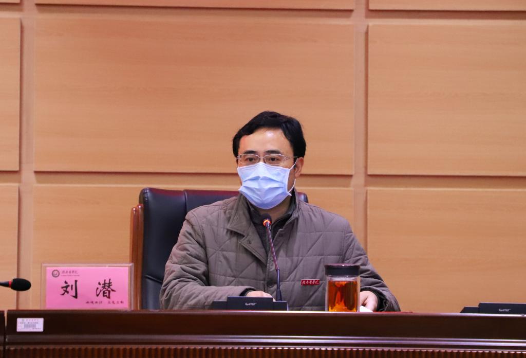 3月13日上午, 我校召开党委(扩大)会议,部署当前有关工作。在全国、全省众志成城抗击新冠肺炎疫情的特殊时期,会议以设立黄金校区图书馆学术报告厅主会场和视频在线分会场的形式召开。党委书记李恭进出席会议并讲话,党委副书记、校长刘潜主持会议。