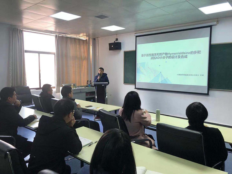 吴熠以《基于活性海洋天然产物Hymenialdsine的多靶点抗AD小分子的设计及合成》为题,以海绵来源的小分子化合物hymenialdisine为先导化合物,设计合成了10余个具有单靶点抗阿尔兹海默症(AD)活性的小分子。