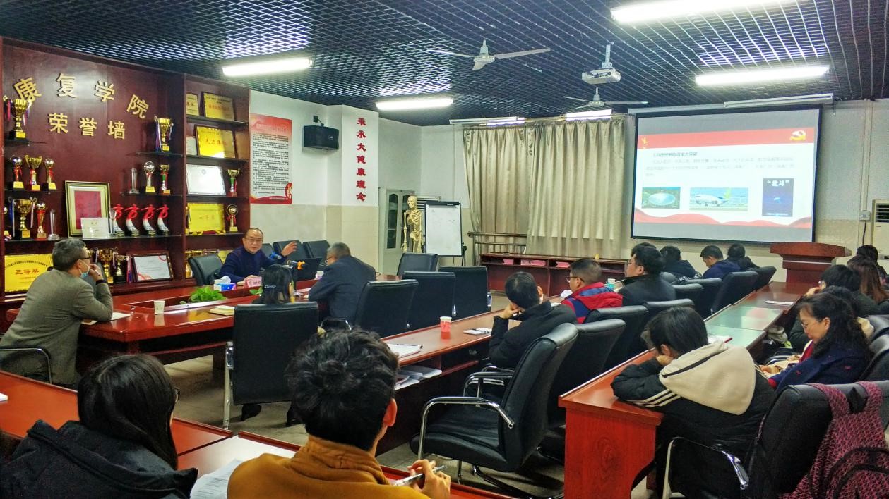 12月23日下午,学校党委委员、纪委书记肖树辉到康复学院宣讲党的十九届五中全会精神,该院教职工和学生代表共50余人到场聆听。