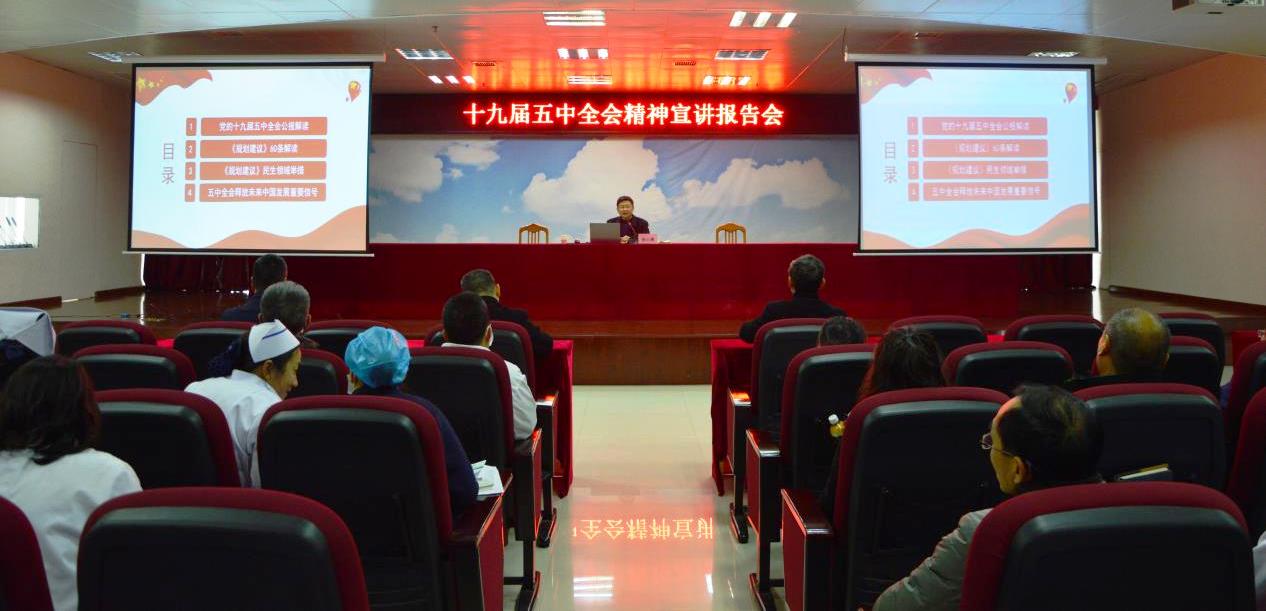 12月25日下午,学校党委委员、副校长张小康到第三附属医院宣讲党的十九届五中全会精神,该院中层及以上干部、全体党员、党员发展对象及入党积极分子等150余人聆听宣讲。
