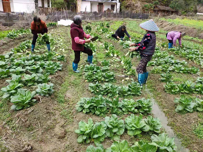 (村民在蔬菜种植基地劳作)