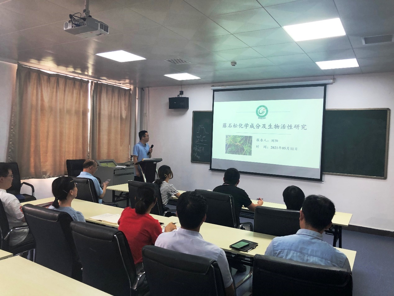 刘阳以《藤石松的化学成分及生物活性研究》为题,介绍了课题组从藤石松中提取分离出近70个化合物,发现部分化合物显示出潜在的AChE和5-LOX抑制活性和神经保护作用,为藤石松治疗脑部疾病的活性化学成分研究及防治相关药物的开发提供科学依据。