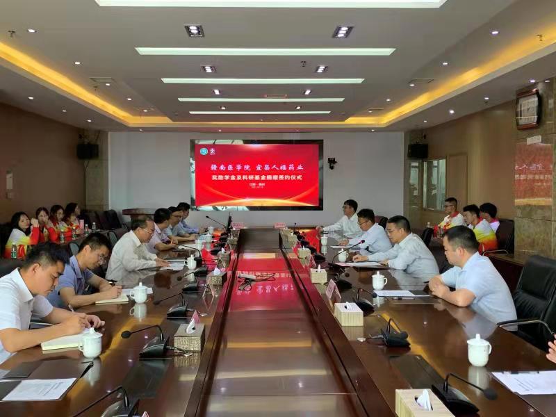叶军明首先代表学校对宜昌人福药业一行的到来表示热烈欢迎,并简要介绍了学校情况。他指出,人福药业此次的高风善举,体现了企业热心公益、心系教育的责任担当,并对他们的爱才之心和育才之行表示感谢。希望双方以此为开端,在人才培养、科技创新、成果转化等方面进行深入交流,共同推动医药事业更高水平联动发展,共同为国家和区域经济社会发展做出更大贡献。
