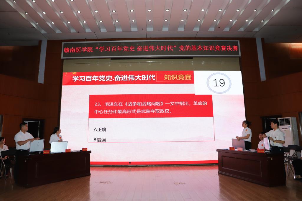 6月18日下午,由学校党委组织部主办、基础医学院党委承办的“学习百年党史 奋进伟大时代”党的基本知识竞答赛(教师组)决赛在黄金校区举行,基础医学院、人文社会科学学院、康复学院、马克思主义学院、公共卫生学院、第一附属医院(第一临床医学院)等6支代表队共计24位教师党员同台竞赛。