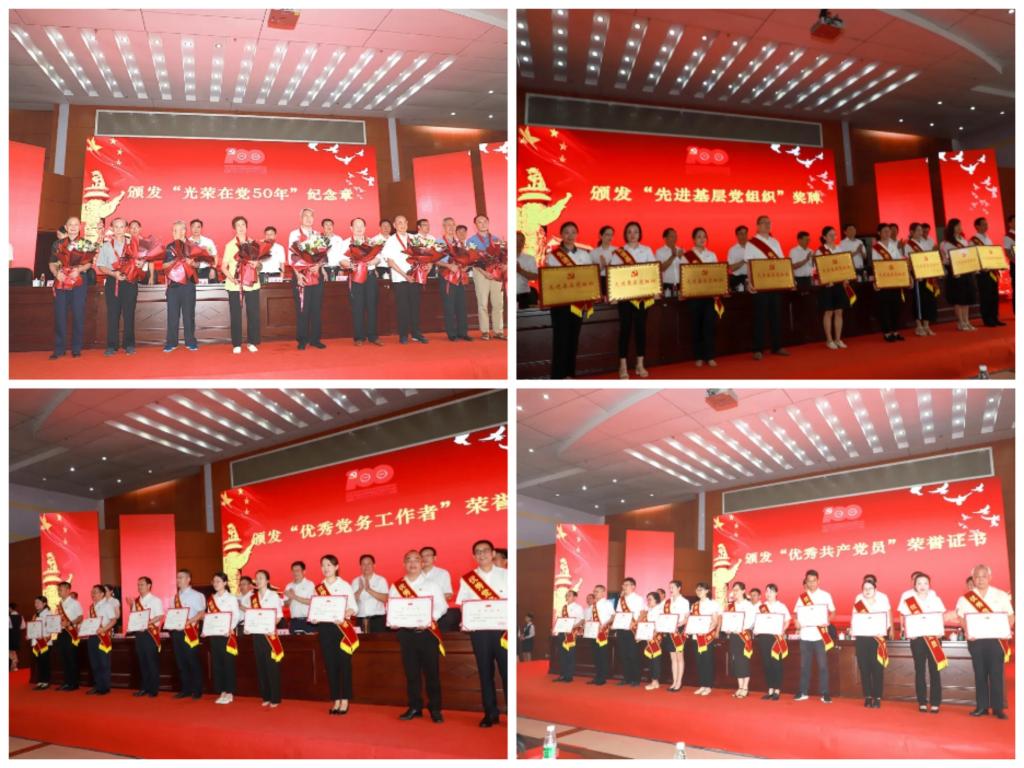 出席会议的领导为党龄50周年以上的老同志颁发了“光荣在党50年”纪念章,新党员向纪念章获得者献花。会上还对优秀共产党员、优秀党务工作者、先进基层党组织进行了表彰,向他们颁发了证书、奖牌。
