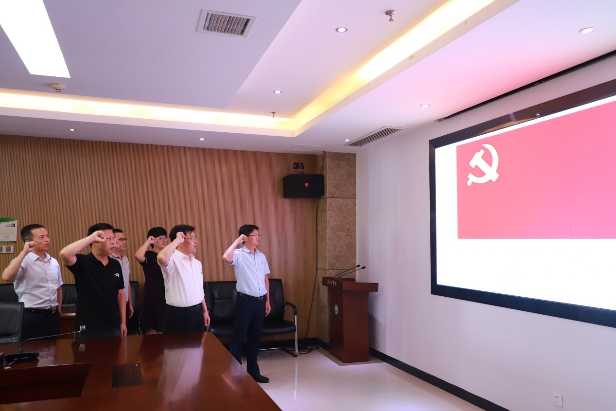 支部书记汪行舟带领全体党员重温入党誓词,面向党旗集体宣誓,诵读了《中国共产党党章》(第二章),书面学习了《中国共产党组织工作条例》《中国共产党党徽党旗条例》,手抄党章党规、重要讲话、经典著作、红色诗词。