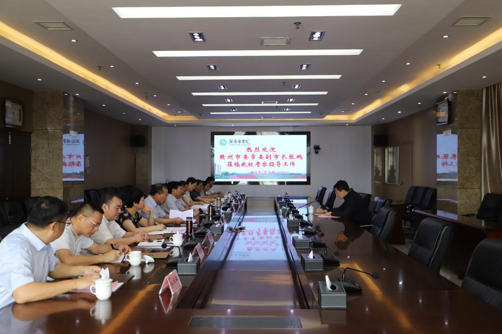 7月16日上午,赣州市委常委、副市长张鹏一行到我校考察指导,并召开座谈会。学校党委书记李恭进主持座谈会,党委委员、副校长黄瑞忠,党委委员、副校长叶军明分别汇报了学校人才工作和重点学科建设情况。