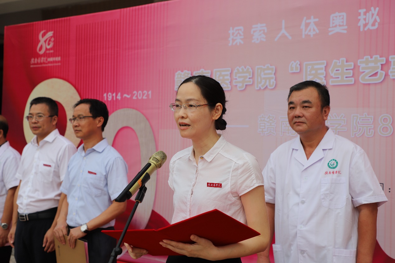 甘雅芬发表致辞,对在赣南医学院八十周年校庆之际举办人体解剖学绘画展表示热烈祝贺,充分肯定了人体解剖绘画比赛和作品展出活动的意义。甘雅芬表示,大赛促进了学生学习能力和思维能力的不断提升,有利于学生更好地将理论知识转化为实践能力,同时也是鼓励医学生在学习中探索人体奥秘、不断创造生命奇迹的一种有力量的平台,使青年学生在校学习与生活更加绚丽多彩。