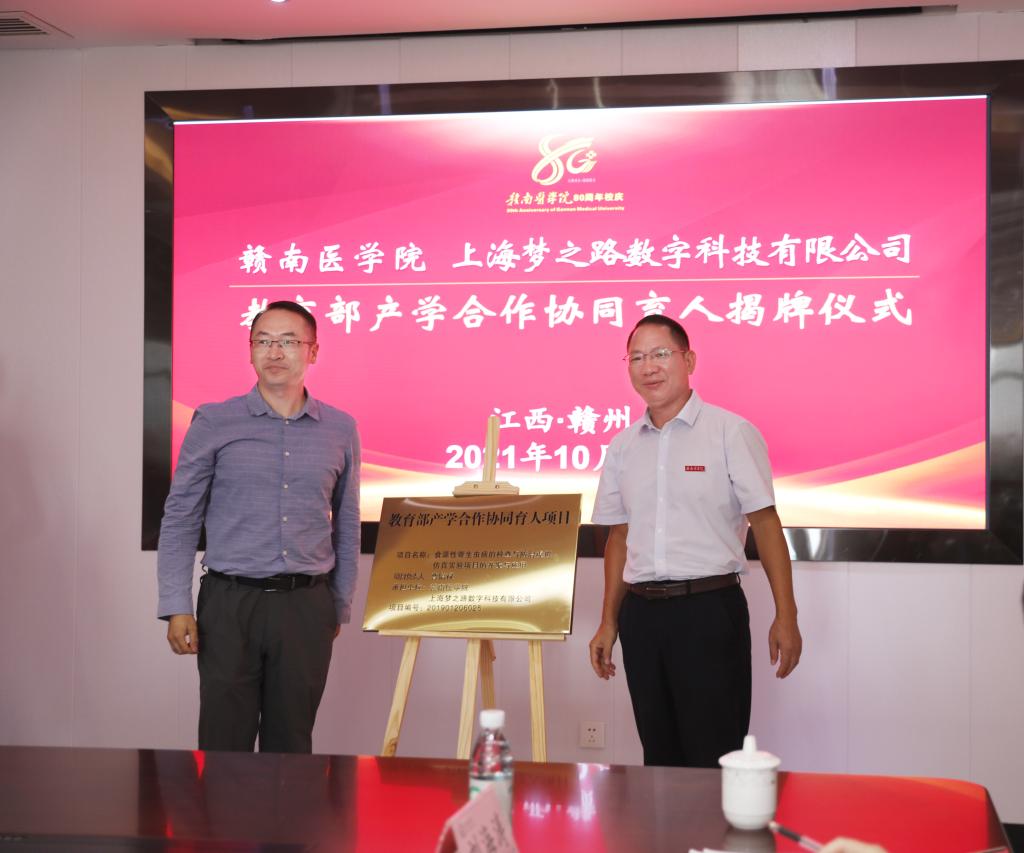 启动仪式上,黄瑞忠代表学校分别与北京超星、山东泽众、上海梦之路为获批的3项教育部产学合作协同育人项目揭牌。