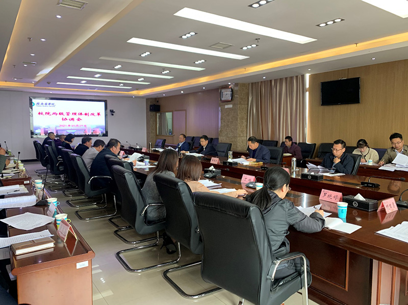 会议汇报了推进校院两级管理体制改革工作进展、实施方案和考核机制等。参会人员围绕校院两级管理体制改革相关具体问题进行了交流与探讨。