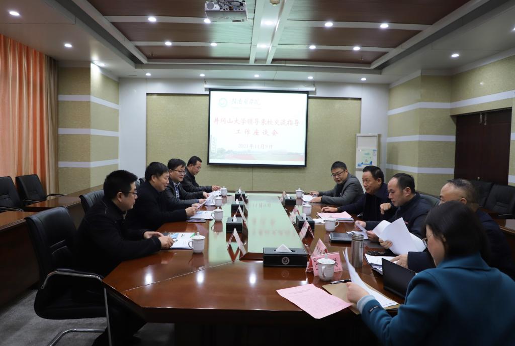 井冈山大学党委(校长)办公室、计财处和我校办公室、计财处、招就处负责同志一同参加座谈。
