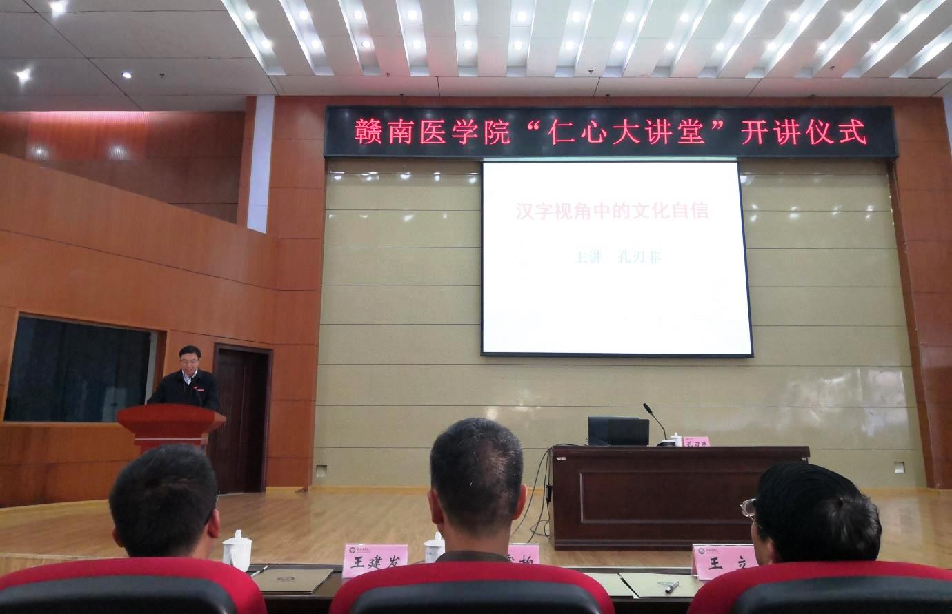 12月10日下午,我校“仁心大讲堂”启动仪式暨第一期讲座在黄金校区举行。学校党委副书记曾泽鑫,党委委员、副校长叶军明出席活动,赣州市政协原副主席孔刃非应邀做客大讲堂。