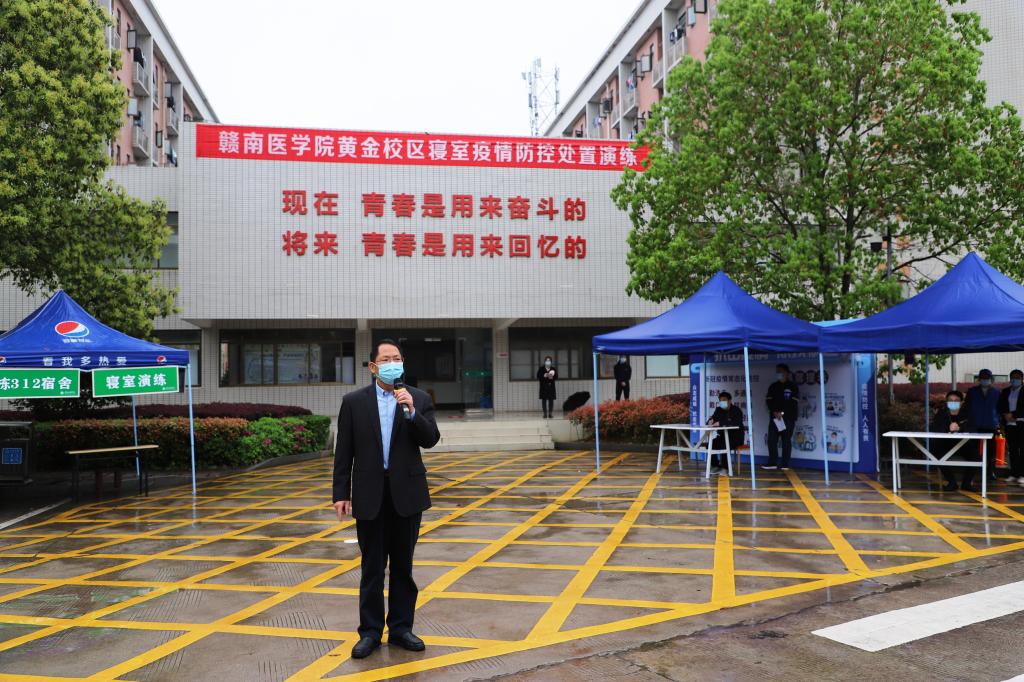 3月25日下午,我校在黄金校区举行2022年春季新冠肺炎疫情防控应急演练。学校党委副书记、新冠肺炎疫情防控工作领导小组副组长曾泽鑫,党委委员、副校长、新冠肺炎疫情防控工作领导小组常务副组长黄瑞忠,党委委员、副校长、新冠肺炎疫情防控工作领导小组副组长叶军明现场观摩指导。