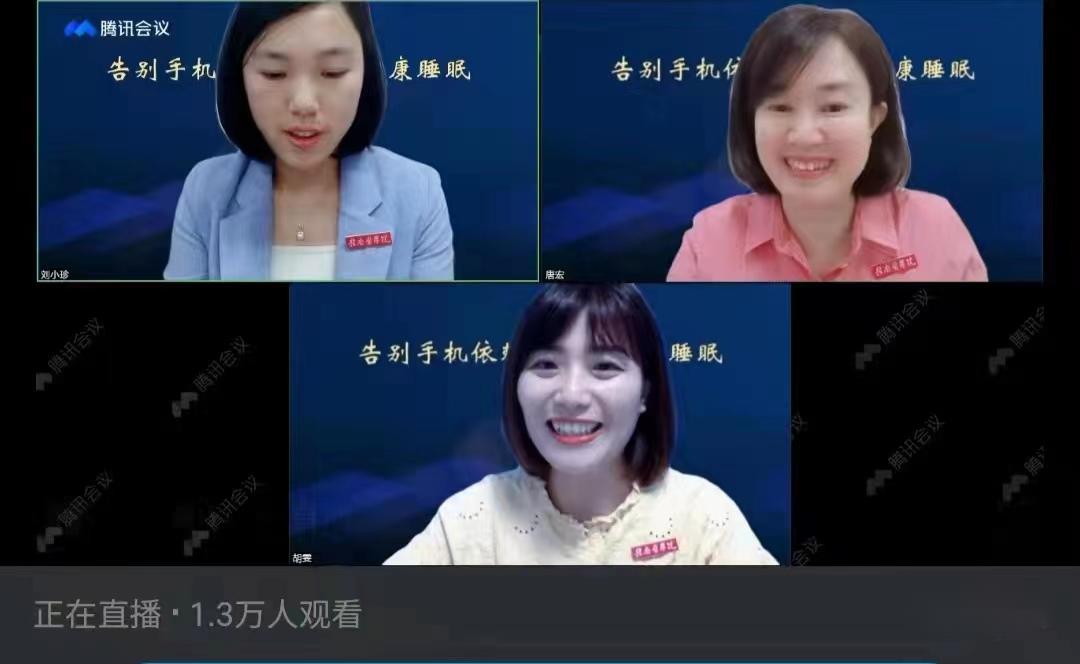 4月27日晚,由江西省教育厅社政处主办,我校承办的江西省第五期“心理云对话”大学生心理成长直播论坛在腾讯会议直播平台举办。人文社会科学学院副院长唐宏、心理咨询中心教师刘小珍担任对话嘉宾,心理咨询中心教师胡雯担任主持嘉宾,活动主题为“告别手机依赖,守护健康睡眠”,全省各高校积极组织学生观看,上线人数达1.3万人。