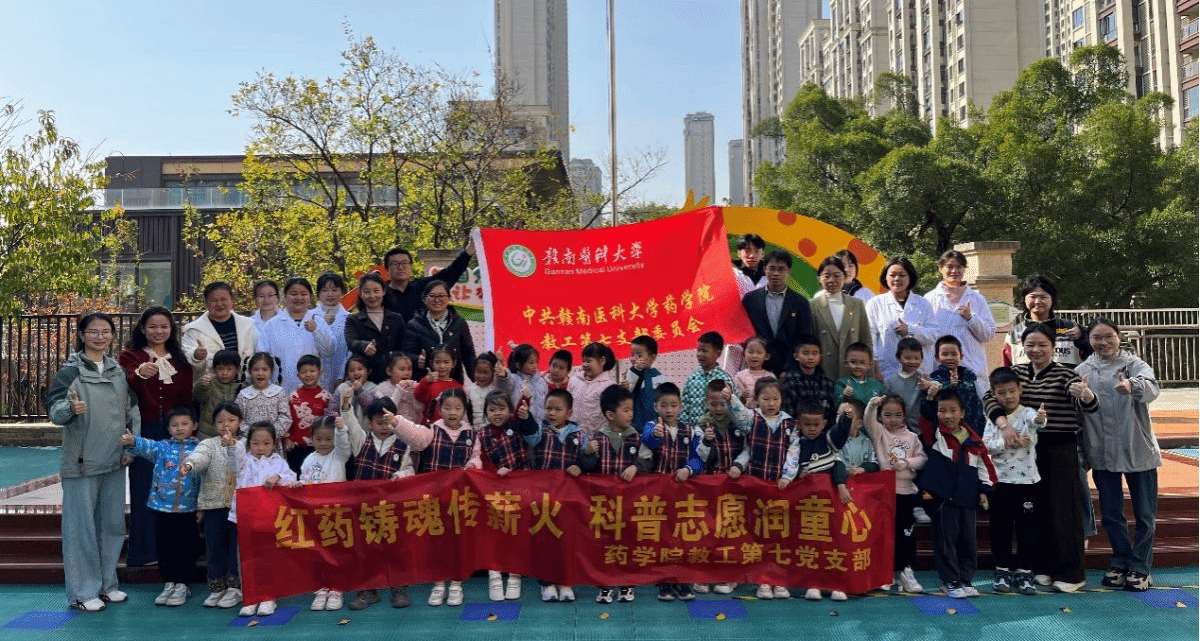 11月25日,为深入推进学校“红医魂”党建品牌建设,以学院“红药匠”党建品牌为抓手,药学院教工第七党支部依托学科专业优势,组织全体教师党员及硕士生党员赴赣州市章贡区第十六保育院,开展“红药铸魂传薪火,科普志愿润童心”主题科普志愿服务活动,以实际行动践行育人使命。