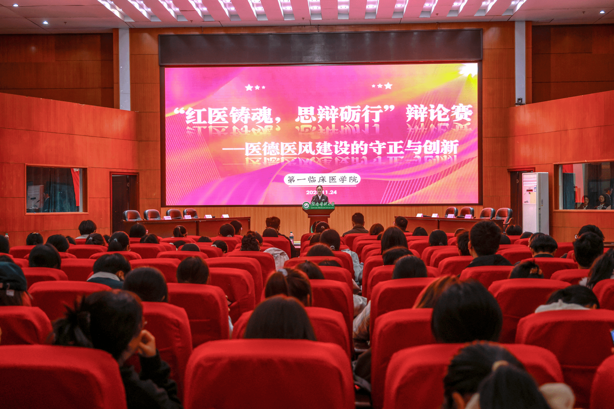为深化医学生廉洁教育,弘扬红医精神,11月24日晚,第一临床医学院在蓉江校区举办“红医铸魂,思辨砺行”主题辩论赛决赛。作为学院“医德医风进校园”系列廉洁教育活动的重要组成部分,本次辩论赛历时一个多月,经过初赛、半决赛的选拔,最终迎来决赛对决。