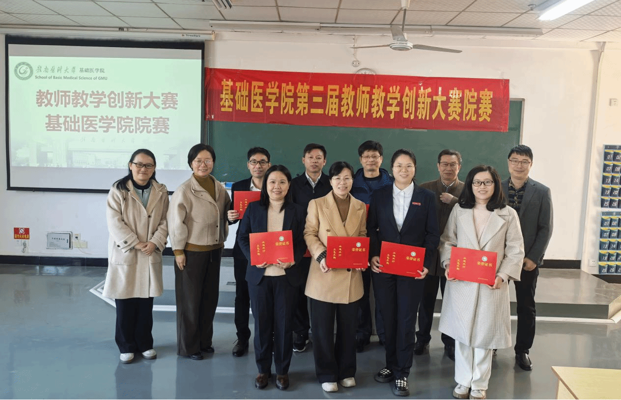 为深入践行党的二十届四中全会精神,全面激发教师教学创新活力,推动课堂教育教学改革提质增效,12月19日,基础医学院在蓉江校区举办第三届教师教学创新大赛院赛。本次比赛邀请了原教务处处长严宜明、护理学院副院长孟利敏、医学技术学院副院长甘滔担任评委。全院教师齐聚现场观摩交流。