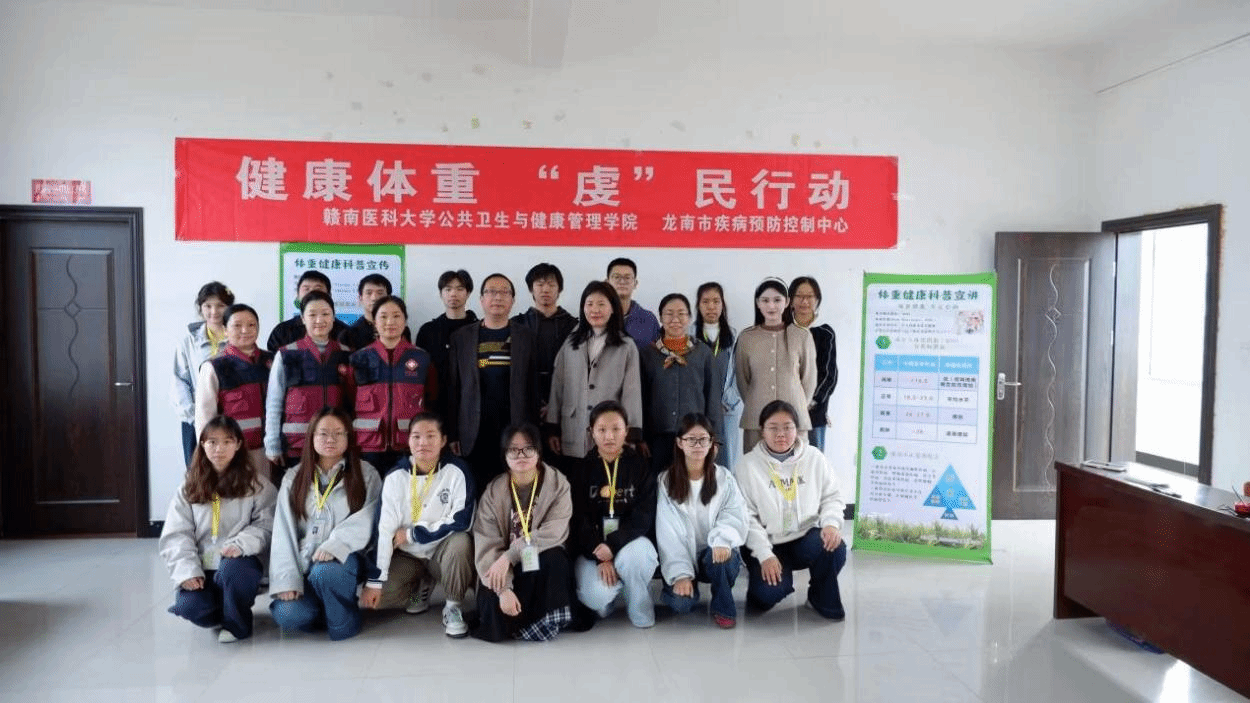 为深入推动健康中国战略在基层落地,提升居民健康素养,12月19日,公共卫生与健康管理学院联合龙南市疾病预防控制中心,组织“红色蒲公英”公卫社会实践志愿服务队,深入龙南市红岩村,举办“健康体重‘虔’民行动”主题志愿服务活动。