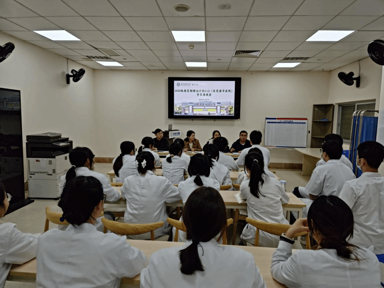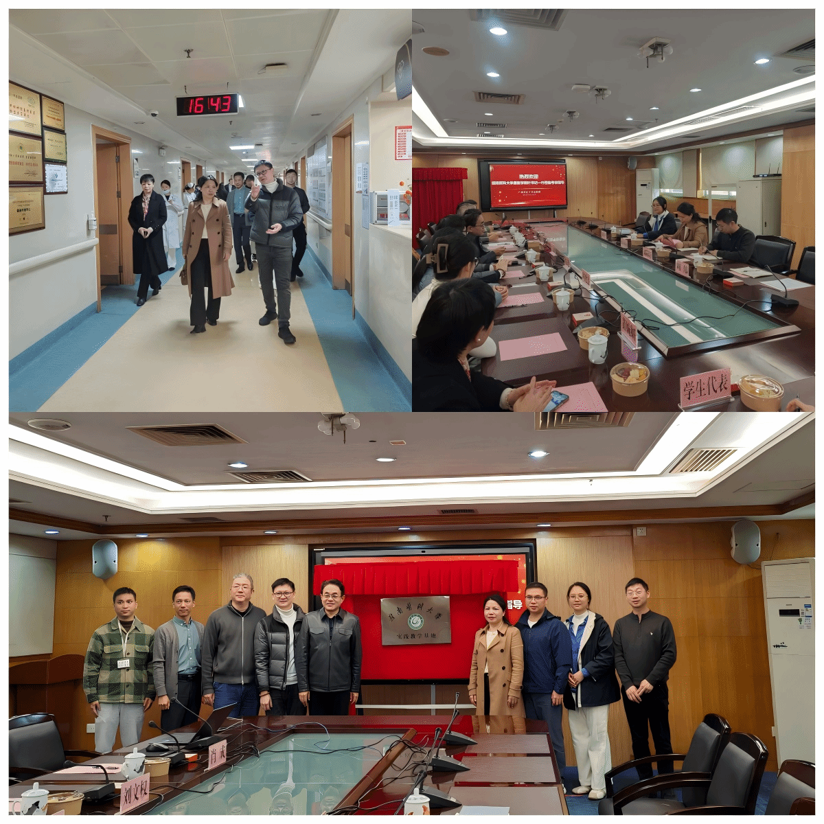 在深圳大学附属华南医院,叶贞丽一行与医院助理院长樊光辉、科教部部长刘楠、康复医学科主任姜鹤群、康复医学科治疗师长程江华等开展座谈交流。会上,樊光辉从医院的建院历史、科室建设、医院特色、用人需求等进行了详细介绍,程江华从科室临床带教、科室诊疗情况、2+2学生教学、实践开展情况等进行了详细汇报。叶贞丽从学院康复治疗学“2+2”创新型培养要求、同质化教学、管理等方面进行了介绍,双方还就如何推进康复治疗学“2+2”创新型培养进行了深入交流。会后,还与在此进行培养的学生进行交流,调研了学生近期学习感受和收集了相关建议。