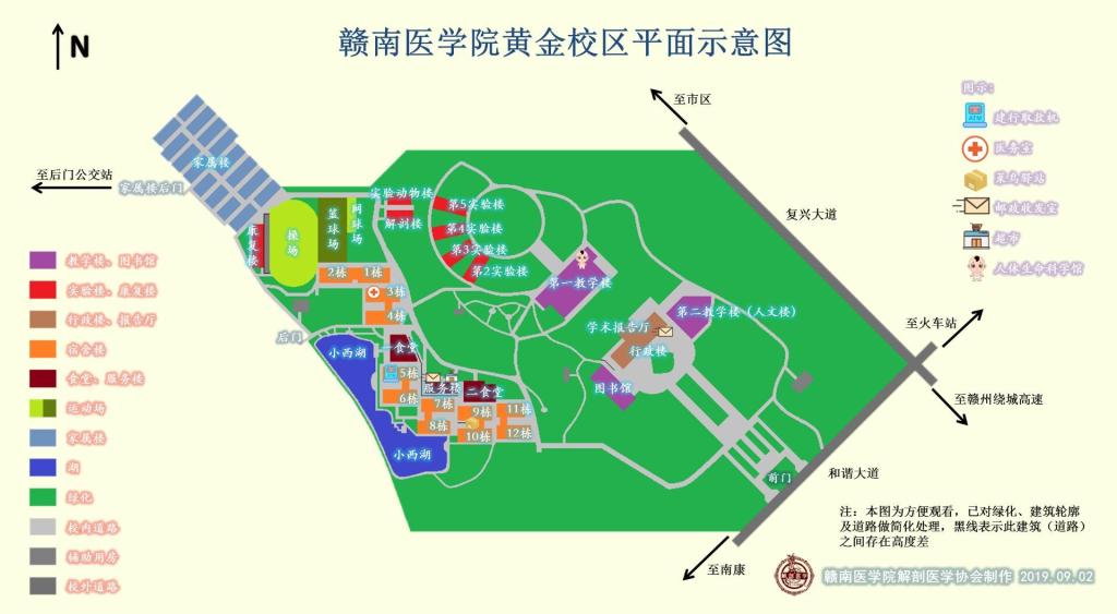 (二)地点:赣南医学院黄金校区(赣州蓉江新区高校园区)第一教学楼。赣州火车站乘坐115路公交车可直达。自驾车从赣州高速赣州南出口下(沙石),往左大约50米到赣南医学院黄金校区。