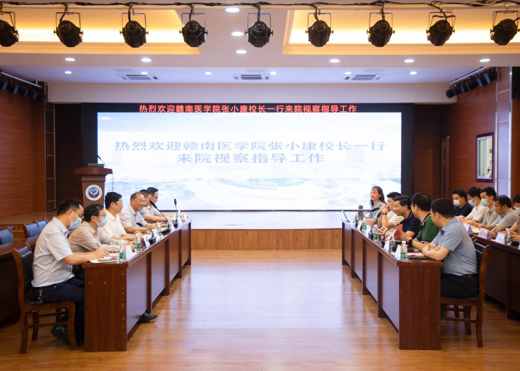 7月20日上午,学校党委副书记、校长张小康前往广东省人民医院赣州医院(赣州市立医院)考察调研,党委委员、副校长叶军明陪同前往。章贡区副区长张毅、广东省人民医院赣州医院(赣州市立医院)党委书记刘福生等参加调研活动。