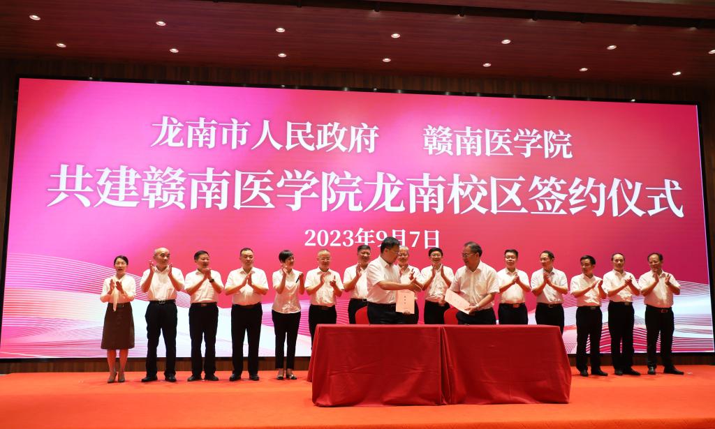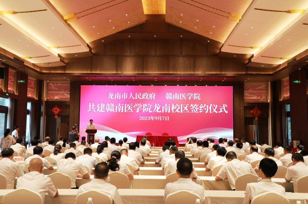 9月7日,龙南市人民政府、赣南医学院共建赣南医学院龙南校区项目签约仪式在龙南市举行。赣州市委常委、副市长窦良坦,学校党委书记、校长张小康出席签约仪式并讲话,龙南经开区党工委副书记、管委会主任、龙南市委书记钟旭辉主持签约仪式。