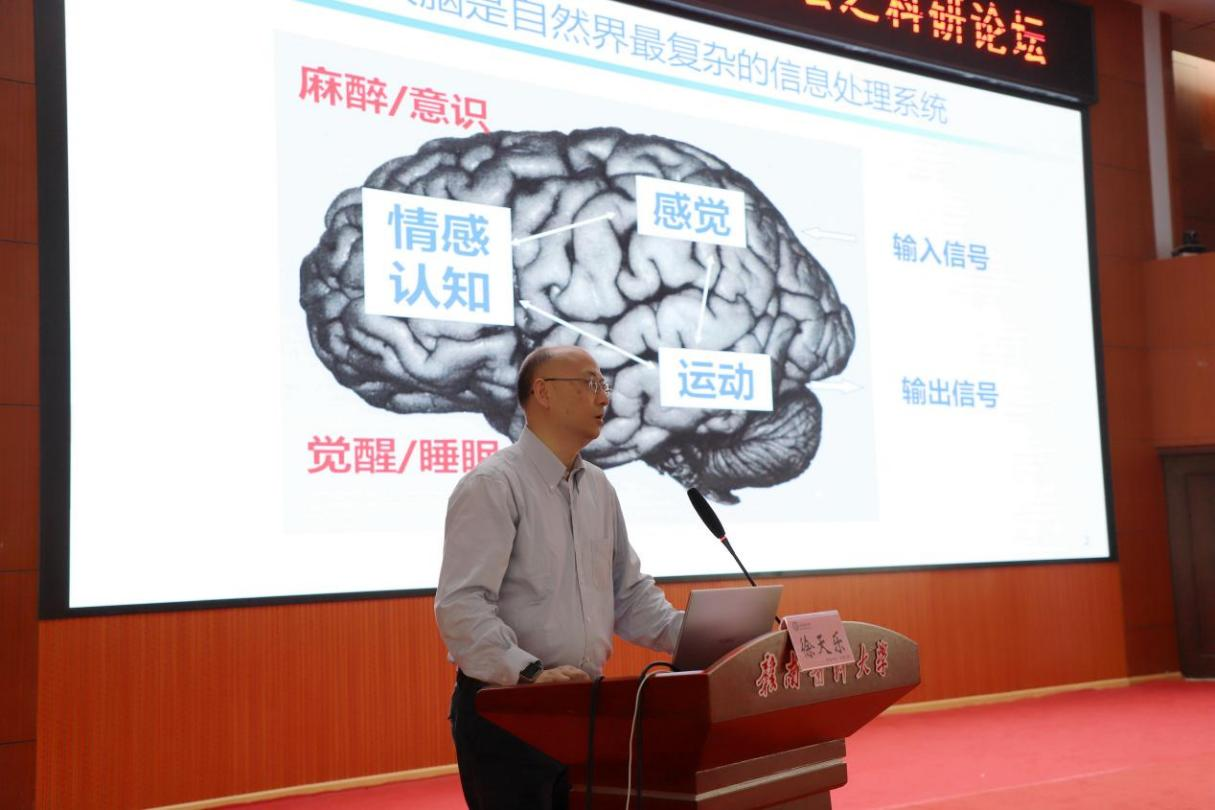 徐天乐报告题目为《神经信息处理新模式及其功能意义》,他围绕着“酸敏感离子通道新配体、新功能和新机制”、“消退记忆信息处理的分子、细胞和神经环路机制”分享了团队的研究进展。
