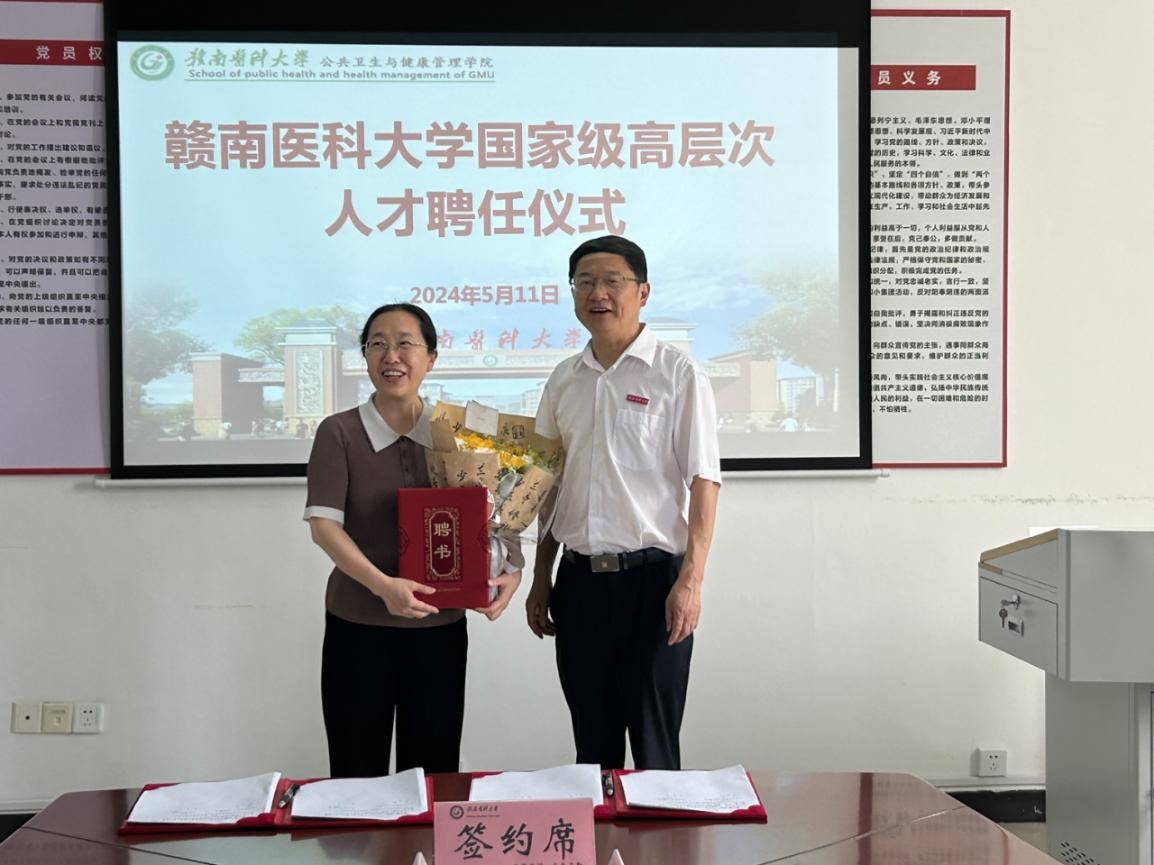 为加强学校师资队伍建设,大力引才引智,充分发挥优秀高层次领军人才对学校教学、科研和学科建设的引领作用,加快推进公共卫生与预防医学“双一流”学科建设,5月11日,我校柔性引进国家级高层次人才陈卫红教授并举行聘任签约仪式。