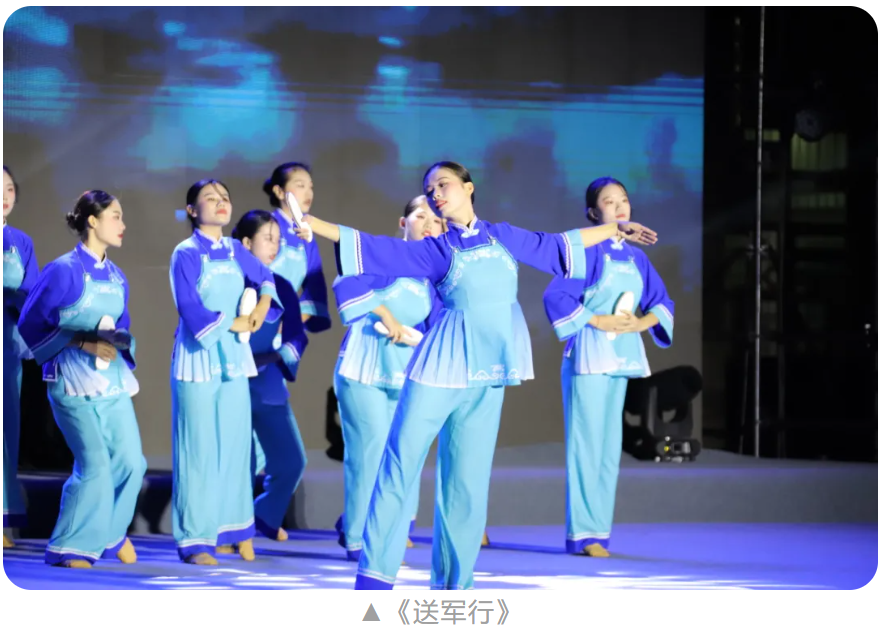 “那一次次的挥手道别,那饱含深情的凝望,无不诉说着对国家的忠诚,对和平的渴望。”护理学院演绎的舞蹈《送军行》,让人们走进战火纷飞、栉风沐雨的日子里,回望那段不可遗忘的记忆。