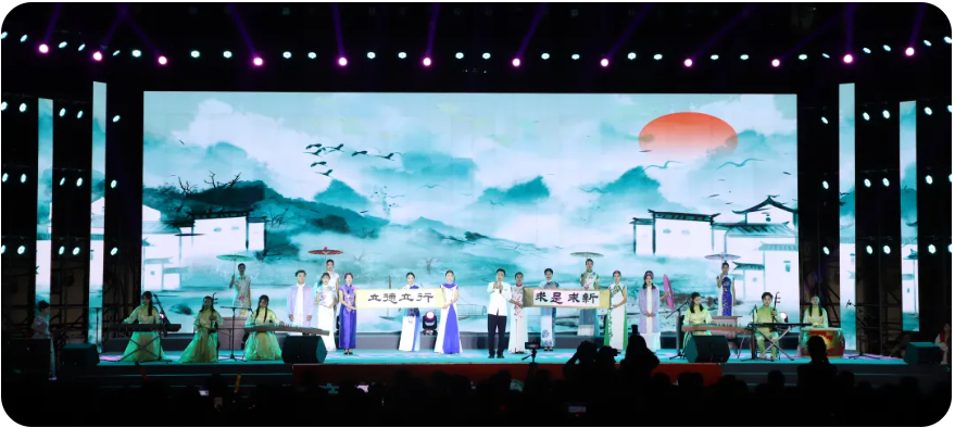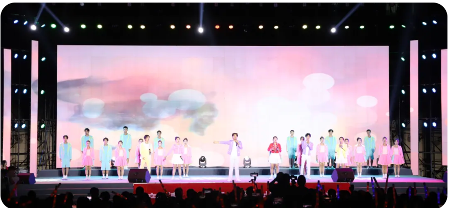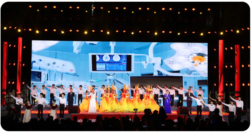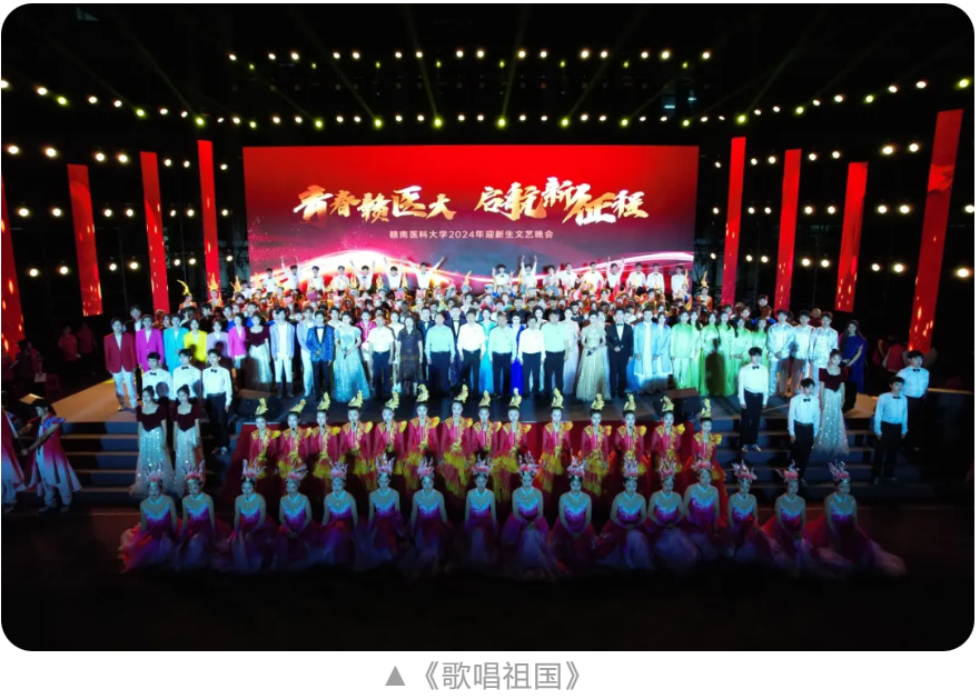 在晚会最后,现场师生共同唱响《歌唱祖国》。百年征程,波澜壮阔。赣医大师生自信自强、守正创新、踔厉奋发、勇毅前行,深入实施“高质量发展三年行动计划”,为把学校建设成为特色鲜明、区域一流、国内知名的高水平医科大学不懈奋斗!